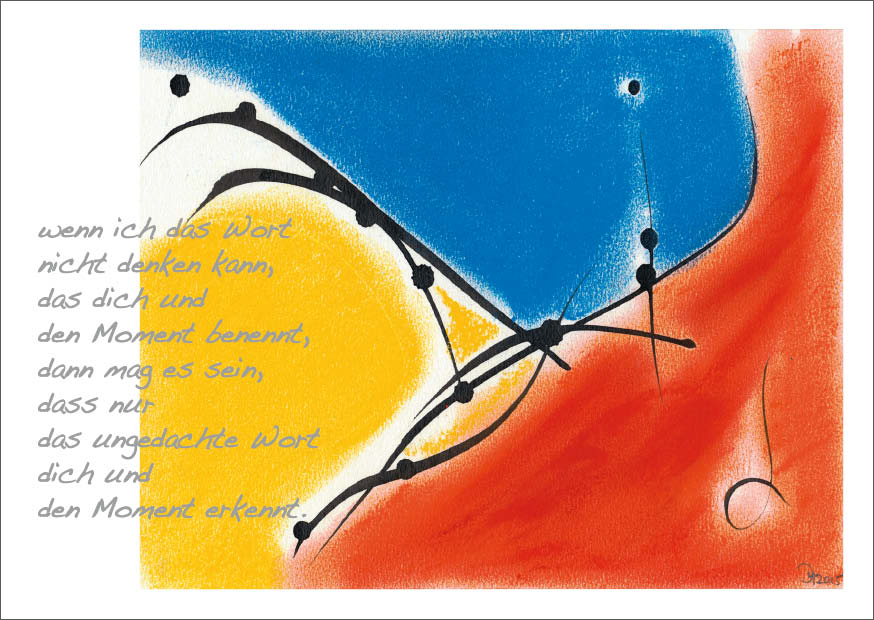 Mit dem zwanglosen Wechselspiel von Kunst und Sprache wollen die Postkarten ihre Betrachter außerdem dazu anregen, eigene innere Bilder und Worte fantasievoll in Schwung zu bringen. (s. auch Das Projekt)
